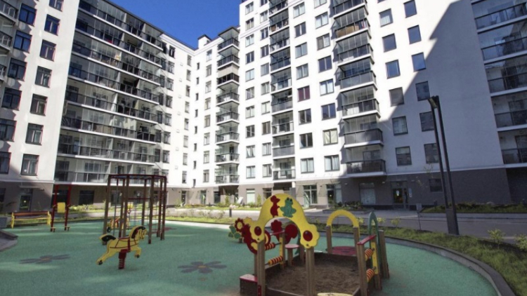 Во дворе дома расположена детская площадка с песочницей, качелями и лазалками.