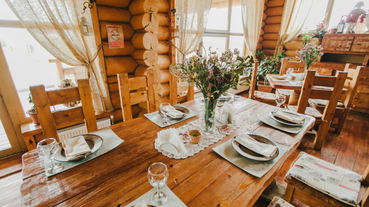 Завтраки для гостей сервируются в стилизованном ресторане «Трактиръ». Здесь же можно заказать по меню гастрономические изыски по старинным русским рецептам. Попробуйте фаршированного карпа или блюда, приготовленные из охотничьих трофеев! В приготовлении блюд используются фрукты и овощи с собственного фермерского хозяйства.