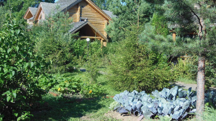 сада и огорода, где выращиваются экологически чистые, натуральные фрукты и овощи, используемые в меню ресторана,