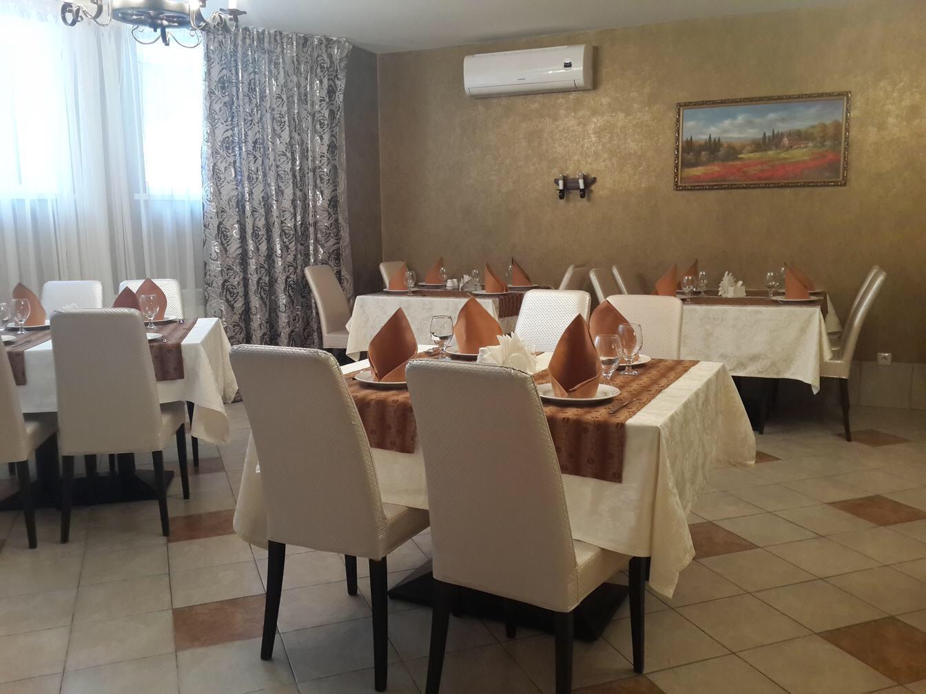 В ресторане клуба можно заказать комплексное питание: завтрак - 200 рублей, обед - 400 рублей, ужин - 400 рублей, или блюда по меню. Предусмотрено банкетное меню для любого торжества.
