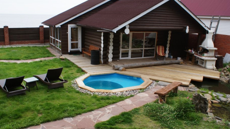 Отдых в Малине. На территории гостиничного дома тоже есть чем заняться. К вашим услугам бесплатный интернет, благодаря которому вы всегда будете на связи с домом или работой, теннисный стол. На приусадебной территории располагается настоящая русская баня с парной из сибирского кедра и открытым бассейном, который наполнен проточной ледяной водой Байкала. Также в бане есть комната отдыха и большой обеденный стол, за которым можно собраться дружной компанией и отлично провести вечер.