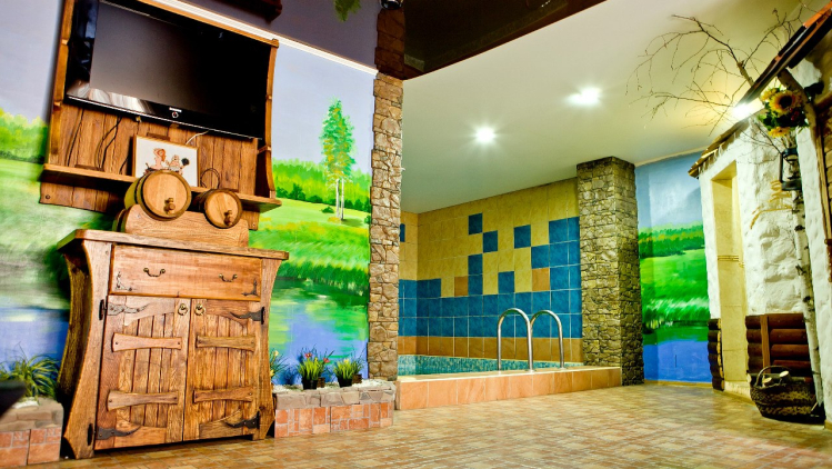 Ценителям жаркого пара предлагается посетить русскую баню на дровах, в которой можно не только попариться, но и отдохнуть. Внутри бани оснащена зона отдыха с мягкими диванами, плазмой и караоке. Дополнительно вы можете заказать душистый чай из русского самовара.