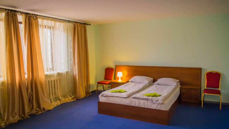Просторный номер выполнен в мягких приятных тонах, создающих уют и домашнее тепло. Это комфортабельный номер с большой двухспальной кроватью, мягким диваном и телевизором. Удобная ванная комната. Возможно размещение на дополнительном месте.