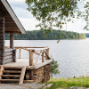 Коттедж из оцилиндрованного бревна для размещения семьи или компании до 4-х человек. Из окон и с террасы открывается живописный панорамный вид на озеро и окрестности. Несколько коттеджей находятся на первой линии и имеют собственный обустроенный спуск к озеру (причал). В коттедже: односпальные кровати, печь, газовая плита, моечная раковина, холодильник, разделочный стол и полки с набором посуды и инвентаря. На террасе коттеджа есть собственный мангал и запас дров. Коттедж данной категории оснащен санузлом без душа.