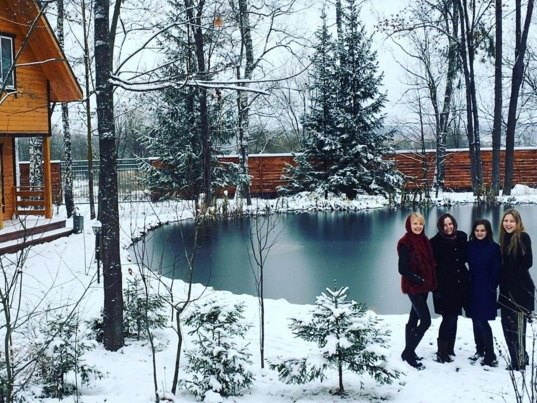 Были с ребенком, 11 лет. Приехали в понедельник вечером. Заселили в коттедж, коттеджи рядом с замёрзшим прудом, 5-6 коттеджей рядом. Какой наш - нашли не сразу, т.к. было темно и дома были без номеров. У нас был 1, на ключе написано 501.