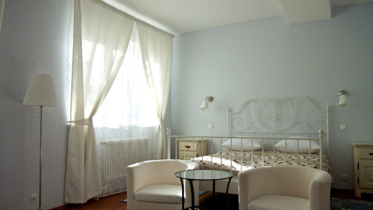 Номер выполнен в прованском стиле – простота и уют, сплетенные воедино дерево, кованые элементы, старое радио, светлые тона, создают комфорт и легкость. Комфортабельный, просторный двухместный номер, 33 кв. м. В номере есть вся необходимая мебель и техника. Wi-Fi в каждом номере.
