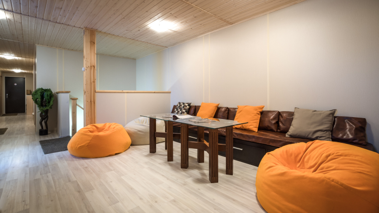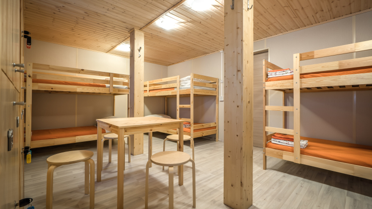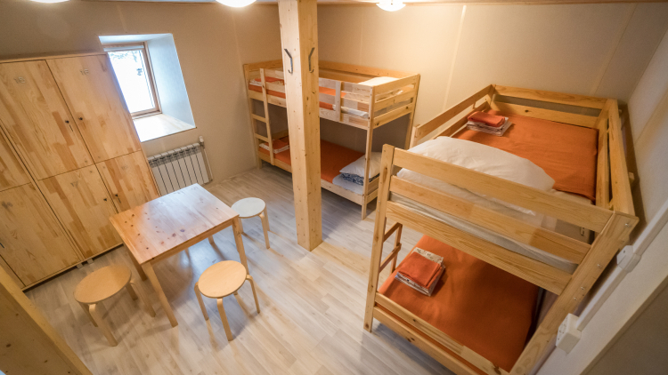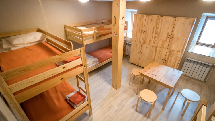 Современный номер в стиле минимализм для комфортного проживания 4 человек. В номере: двухъярусные кровати, шкаф, стол, стулья, постельные принадлежности. На этаже: общий санузел с душем, гостиная, кулер, Wi-Fi.